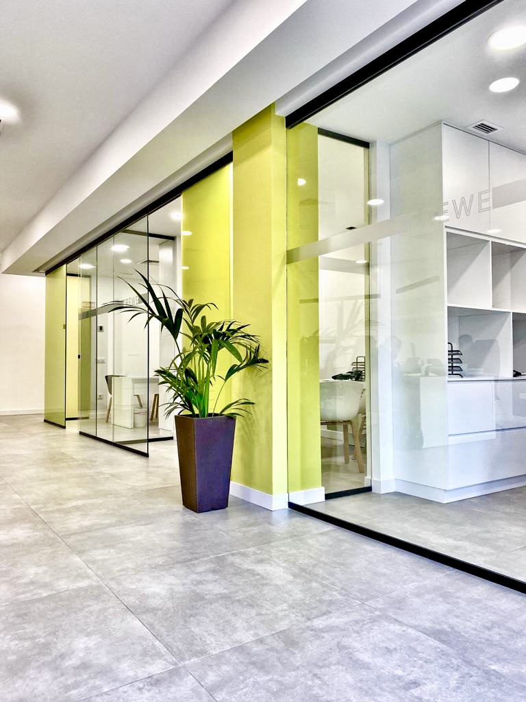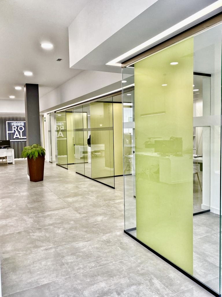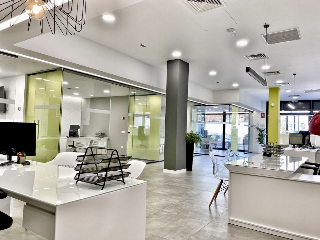 El proyecto incluyó la instalación de divisiones acristaladas, mobiliario contemporáneo, iluminación integrada y acabados de alta calidad, logrando un ambiente amplio, luminoso y adaptado a las necesidades operativas.
