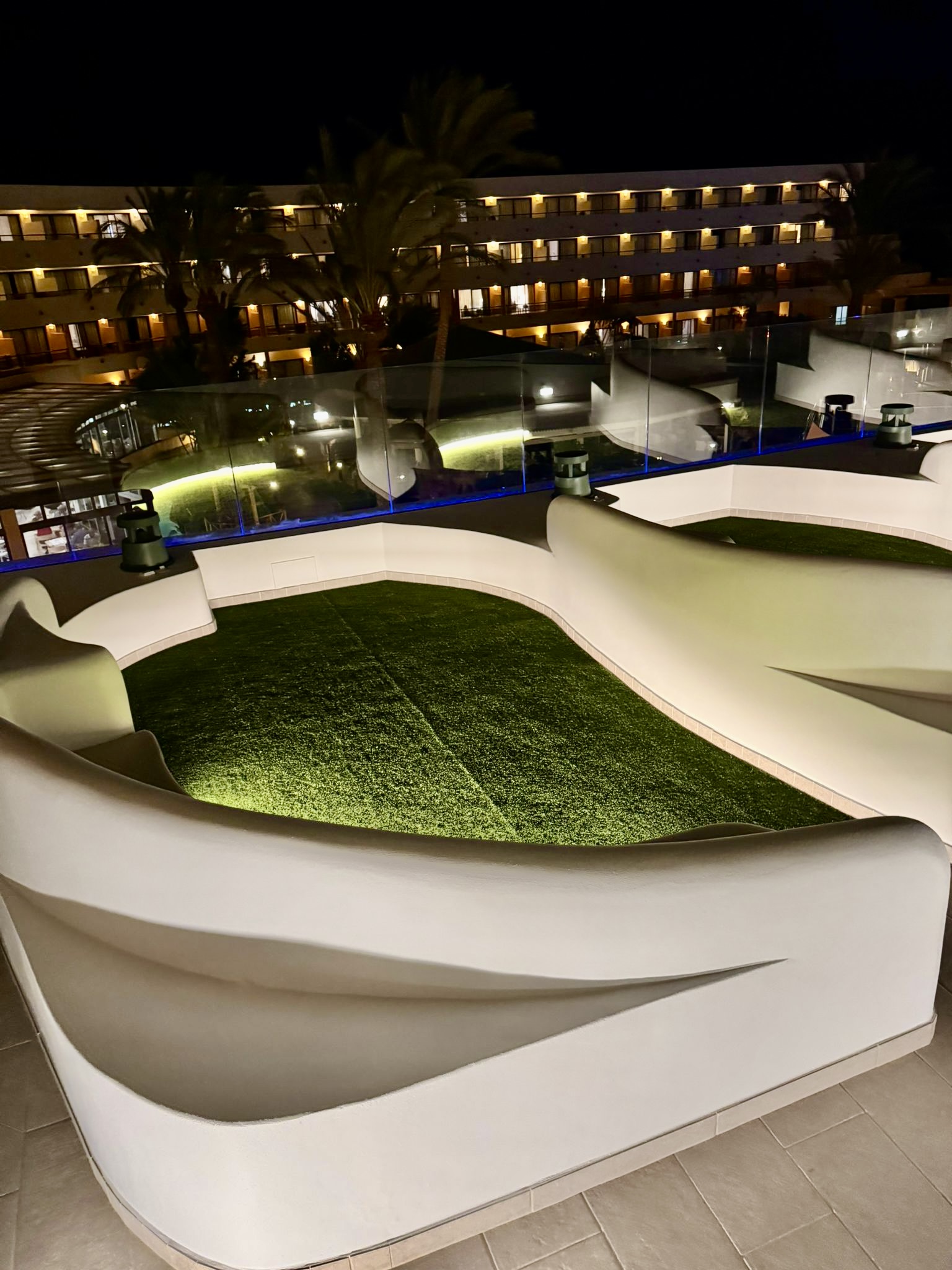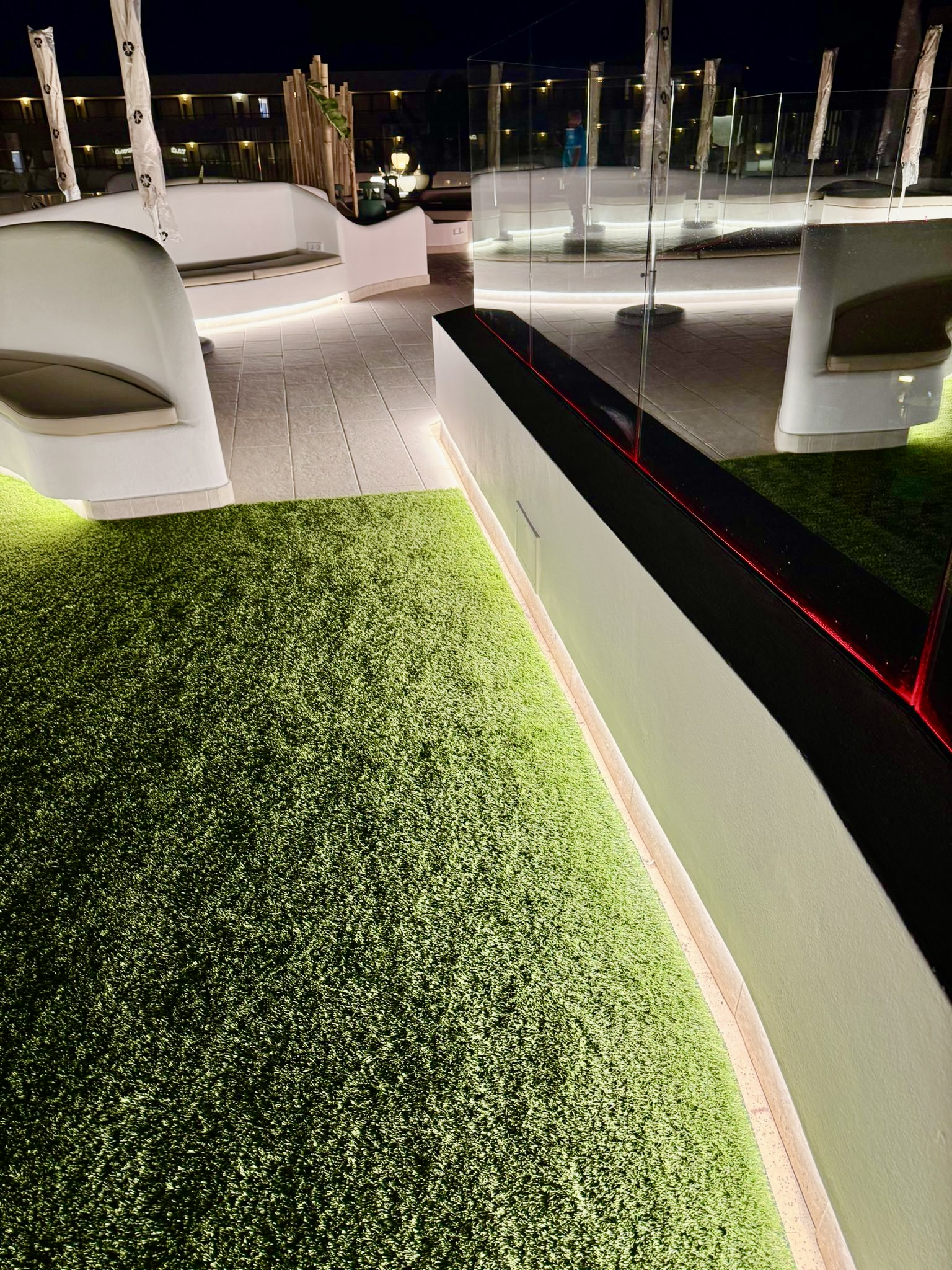 Hemos completado la renovación integral de una terraza y zonas chill-out en un complejo hotelero, creando un espacio exclusivo que combina diseño moderno, iluminación ambiental y materiales de alta calidad. El proyecto incluyó la instalación de barandillas de cristal, áreas ajardinadas con césped artificial y pavimentos premium, todo pensado para ofrecer una experiencia única al aire libre.