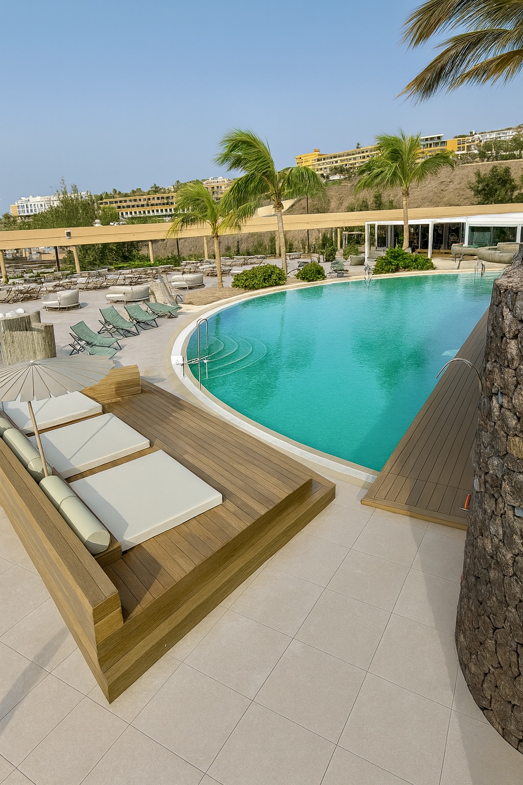 Desde piscinas infinity con vistas al Atlántico, hasta zonas chill-out y terrazas premium, todo ha sido pensado para crear ambientes únicos que inviten al relax y la desconexión. Los restaurantes renovados destacan por su estilo mediterráneo y materiales naturales, ofreciendo una experiencia gastronómica en un entorno sofisticado.