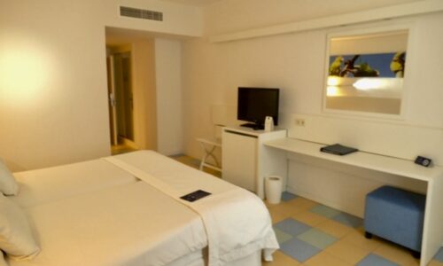 Reforma global del Hotel Iberostar Bouganville, actuando en las habitaciones, el restaurante principal, la zona de solárium, el kiosko exterior y la fachada del edificio. El proyecto modernizó por completo los espacios, incorporando un diseño más luminoso, funcional y adaptado a los estándares de confort de una instalación hotelera de alta ocupación.
