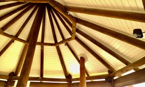 Kiosko exterior: construcción y diseño de un nuevo kiosko con estructura ligera y estética tropical.