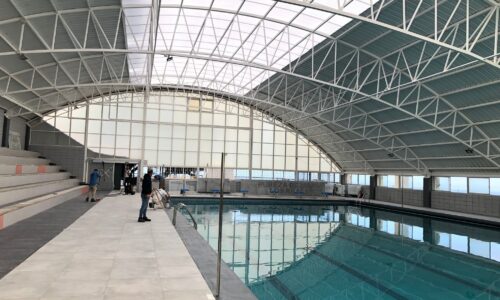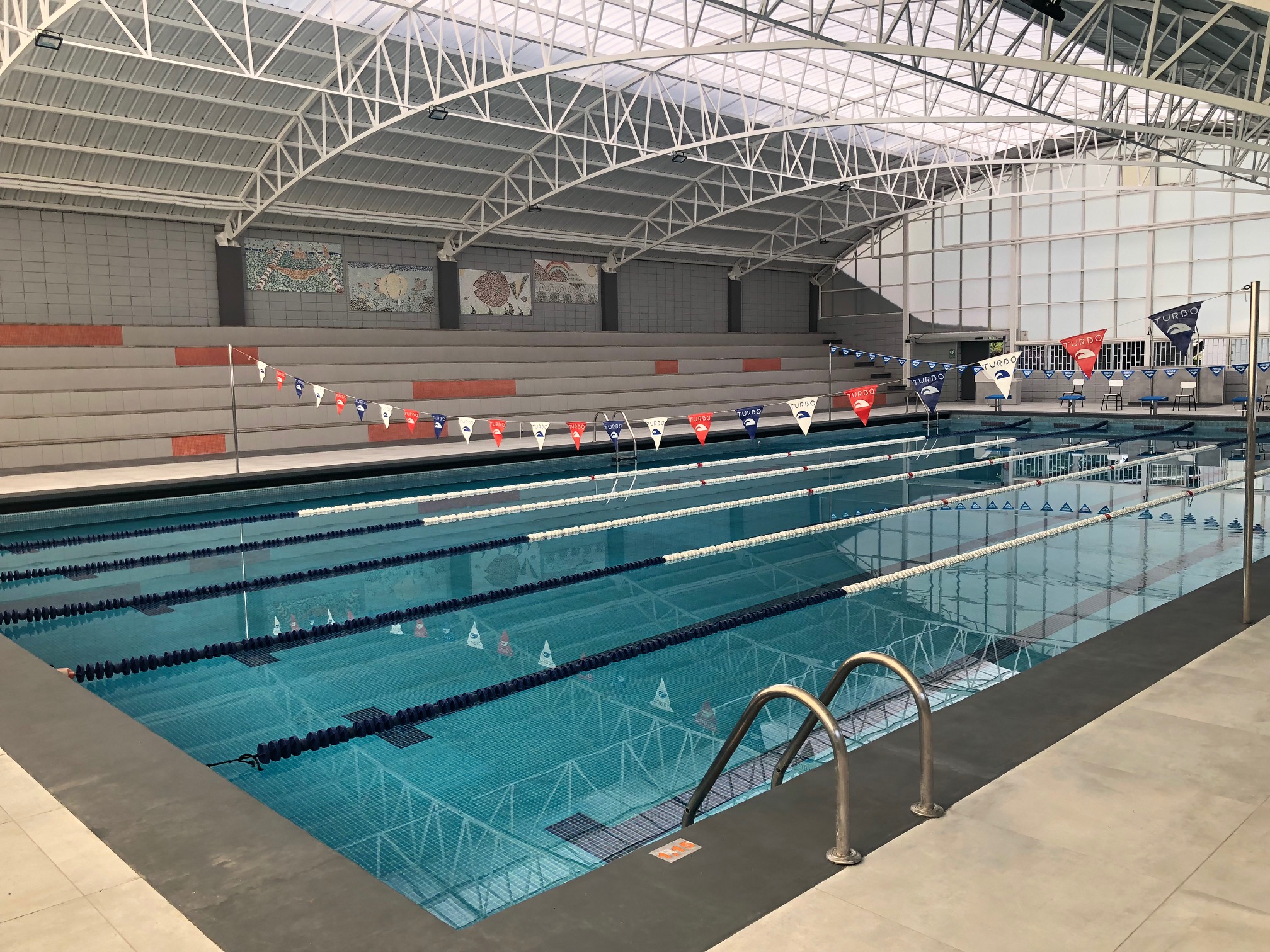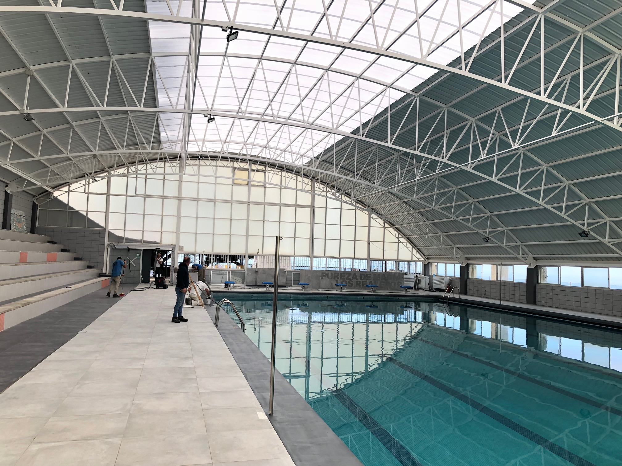 Ejecución de la piscina cubierta y su entorno, con renovación del vaso, iluminación, graderío y sistema de climatización adaptado al uso escolar.